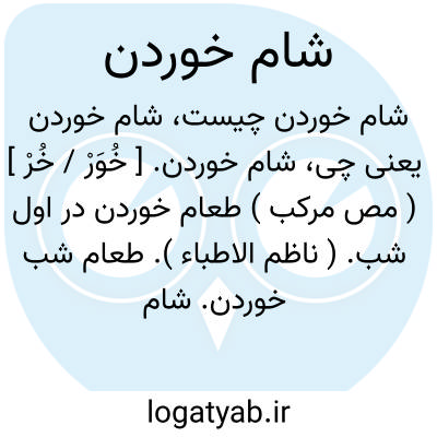 شام خوردن. [ خُوَرْ / خُرْ ] ( مص مرکب ) طعام خوردن در اول شب. ( ناظم الاطباء ). طعام شب خوردن. شام شکستن. تناول کردن. طعام در شب هنگام: هرگاه که مردم پس طعام و شام خوردن خفتن عادت دارد و طعامها خورد که از آن ماده سرد و تر و بخاری غلیظتولد کند پلک چشم سطبر شود. ( ذخیره خوارزمشاهی ).