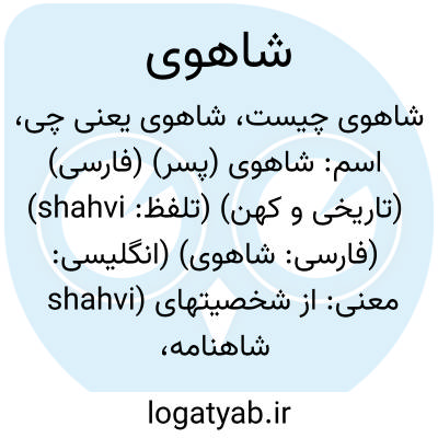 اسم: شاهوی (پسر) (فارسی) (تاریخی و کهن) (تلفظ: shahvi) (فارسی: شاهوی) (انگلیسی: shahvi)