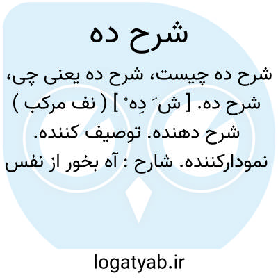 شرح ده. [ ش َ دِه ْ ] ( نف مرکب ) شرح دهنده. توصیف کننده. نمودارکننده. شارح: