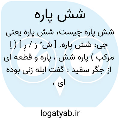 شش پاره. [ ش ُ رَ / رِ ] ( اِ مرکب ) پاره شش، پاره و قطعه ای از جگر سفید: گفت ابله زنی بوده ای، شش پاره که به یک جو نمی ارزد میبرد ( گربه ) تبری که به ده دینار خریده ام رها خواهد کرد. ( منتخب لطایف عبید زاکانی چ برلن ص 149 ).
