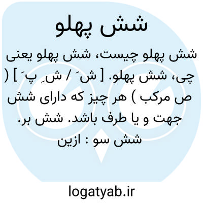شش پهلو. [ ش َ / ش ِ پ َ ] ( ص مرکب ) هر چیز که دارای شش جهت و یا طرف باشد. شش بر. شش سو: