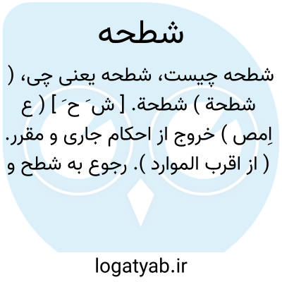 ( شطحة ) شطحة. [ ش َ ح َ ] ( ع اِمص ) خروج از احکام جاری و مقرر. ( از اقرب الموارد ). رجوع به شطح و شطحات و شطحیات شود.