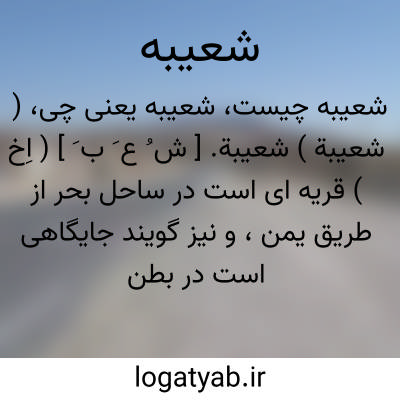 ( شعیبة ) شعیبة. [ ش ُ ع َ ب َ ] ( اِخ ) قریه ای است در ساحل بحر از طریق یمن، و نیز گویند جایگاهی است در بطن الرمة. ( از معجم البلدان ). وادیی است. ( منتهی الارب ).