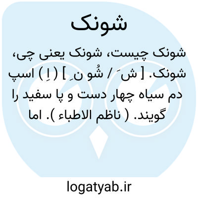 شونک. [ ش َ / شُو ن ِ ] ( اِ ) اسپ دم سیاه چهار دست و پا سفید را گویند. ( ناظم الاطباء ). اما ظاهراً کلمه دگرگون شده شولک باشد. رجوع به شولک شود.