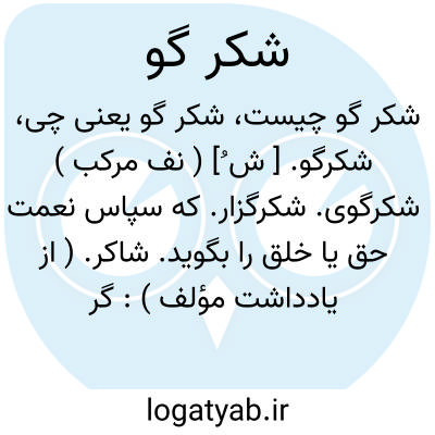 شکرگو. [ ش ُ] ( نف مرکب ) شکرگوی. شکرگزار. که سپاس نعمت حق یا خلق را بگوید. شاکر. ( از یادداشت مؤلف ):