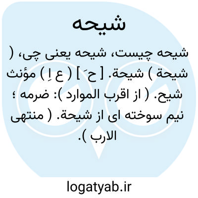 ( شیحة ) شیحة. [ ح َ ] ( ع اِ ) مؤنث شیح. ( از اقرب الموارد ): ضرمه؛ نیم سوخته ای از شیحة. ( منتهی الارب ).