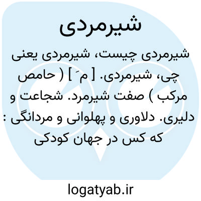 شیرمردی. [ م َ ] ( حامص مرکب ) صفت شیرمرد. شجاعت و دلیری. دلاوری و پهلوانی و مردانگی: