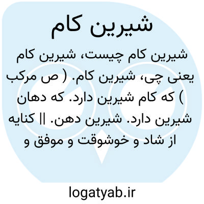 شیرین کام. ( ص مرکب ) که کام شیرین دارد. که دهان شیرین دارد. شیرین دهن. || کنایه از شاد و خوشوقت و موفق و پیروز: شیرین کام باشی. ( از یادداشت مؤلف ).