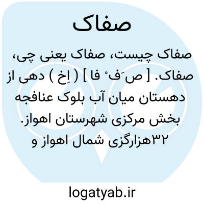 صفاک. [ ص َف ْ فا ] ( اِخ ) دهی از دهستان میان آب بلوک عنافجه بخش مرکزی شهرستان اهواز. 32هزارگزی شمال اهواز و 3هزارگزی خاوری راه آهن و کنار رود. دره،دشت. گرمسیر. سکنه 200 تن. آب از رودخانه دز. محصول آنجا غلات و لوبیا در ساحل. شغل اهالی زراعت و گله داری. و صنایع دستی قالیچه بافی است. راه در تابستان اتومبیل رو است. تپه معروف کتیبه از آثار ابنیه قدیمی است. ساکنین از طایفه دغاغله هستند. جنگل بید در ساحل رودخانه دارد. ( فرهنگ جغرافیایی ایران ج 6 ).