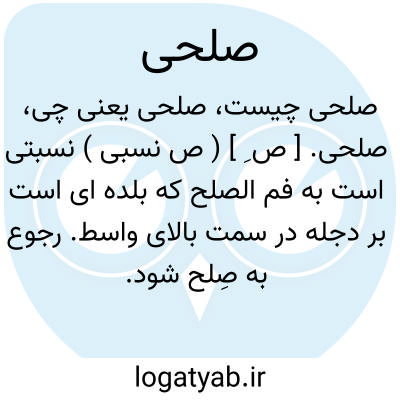 صلحی. [ ص ِ ] ( ص نسبی ) نسبتی است به فم الصلح که بلده ای است بر دجله در سمت بالای واسط. رجوع به صِلح شود.