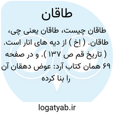طاقان. ( اِخ ) از دیه های انار است. ( تاریخ قم ص 137 ). و در صفحه 69 همان کتاب آرد: عوض دهقان آن را بنا کرده است و از قدیمتر ضیاع انار است.