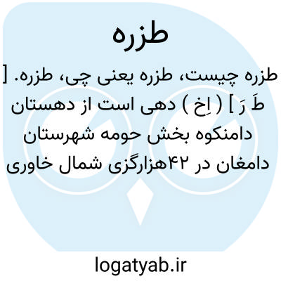 طزره. [ طَ رَ ] ( اِخ ) دهی است از دهستان دامنکوه بخش حومه شهرستان دامغان در 42هزارگزی شمال خاوری دامغان و 24هزارگزی شمال شوسه دامغان به شاهرود. کوهستانی و سردسیر با 705 تن سکنه. آب آن از قنات و محصول آنجا غلات و حبوبات و لبنیات و مختصر میوه. شغل اهالی زراعت و گله داری است و عده ای برای تأمین معاش زمستان به مازندران میروند. صنایع دستی زنان کرباس بافی. از طریق مهماندوست و بق اتومبیل میتوان برد. ( از فرهنگ جغرافیایی ایران ج 3 ).