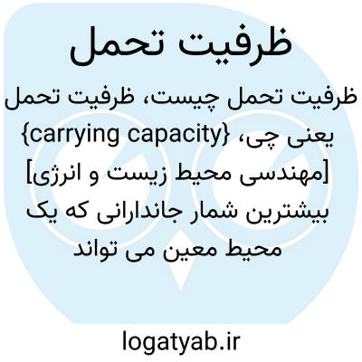 {carrying capacity} [مهندسی محیط زیست و انرژی] بیشترین شمار جاندارانی که یک محیط معین می تواند تحمل کند بی آنکه توانایی درازمدت آن در حفظ سطح و کیفیت مطلوب حیات کاهش یابد متـ. ظرفیت بوم شناختی ecological capacity، حد بوم شناختی ecological limit، ظرفیت زیست محیطی e...