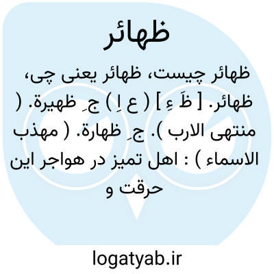 ظهائر. [ ظَ ءِ ] ( ع اِ ) ج ِ ظهیرة. ( منتهی الارب ). ج ِ ظهارة. ( مهذب الاسماء ): اهل تمیز در هواجر این حرقت و ظهایر این مشقت در ظل ظلیل او اکتنان ساخته اند. ( ترجمه تاریخ یمینی ).