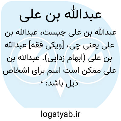 [ویکی فقه] عبدالله بن علی (ابهام زدایی). عبدالله بن علی ممکن است اسم برای اشخاص ذیل باشد: • عبدالله بن علی بن ابی طالب، فرزند امیرالمؤمنین، علی (علیه السلام)، از جمله چهار پسر ام البنین، دختر حزام و از شهدای کربلا• عبدالله بن علی سبط خیاط، عالم قرائت و محدّث حنبلی در قرن پنجم و ششم• عبدالله بن علی کاشانی، مورخ، نویسنده و از خانواده هنرمند و کاشی کار• عبدالله بن علی وزیر، عالم، مورخ و ادیب زیدی