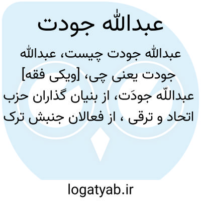 [ویکی فقه] عبداللّه جودَت، از بنیان گذاران حزب اتحاد و ترقی، از فعالان جنبش ترک های جوان، نویسنده، مترجم، پزشک و شاعر می باشد.