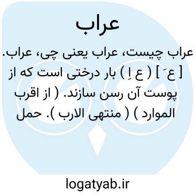 عراب. [ ع َ ] ( ع اِ ) بار درختی است که از پوست آن رسن سازند. ( از اقرب الموارد ) ( منتهی الارب ). حمل الحزم و هو شجر یفتل من لحائه الحبال. ( اقرب الموارد ). || بانگ اشترمرغ. ( مهذب الاسماء ).