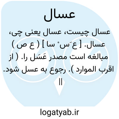 عسال. [ ع َس ْ سا ] ( ع ص ) مبالغه است مصدر عَسَل را. ( از اقرب الموارد ). رجوع به عسل شود. || منسوب به عسل. ( از الانساب سمعانی ). || انگبین گیرنده. ( منتهی الارب ). انگبین چین. ( ملخص اللغات حسن خطیب کرمانی ). چیننده عسل از جای آن. ( از اقرب الموارد ). || انگبین فروش. ( ملخص اللغات حسن خطیب کرمانی ) ( ناظم الاطباء ). || شکرریز. ( ناظم الاطباء ). || نیزه سخت جنبان. ( منتهی الارب ). رمح و نیزه که از نرمی به اهتزاز آید. ( از اقرب الموارد ). || ( اِ )انجیر سیاه و یا سپید بسیار شیرین. ( ناظم الاطباء ). || گرگ. ( ناظم الاطباء ) ( از تاج العروس ).