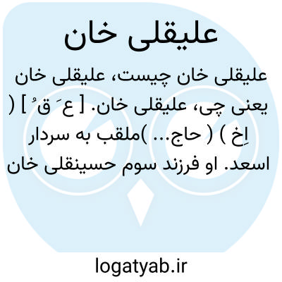 علیقلی خان. [ ع َ ق ُ ] ( اِخ ) ابن شاه وردی خان، والی لر کوچک. وی تا آخر عمر به صورت تبعید در خراسان می زیست و برخی اشعار او را نصرآبادی نقل کرده است. ( از الذریعه ج 9 ص 761 ازتذکره نصرآبادی فصل دوم ص 32 و روز روشن ص 471 ).