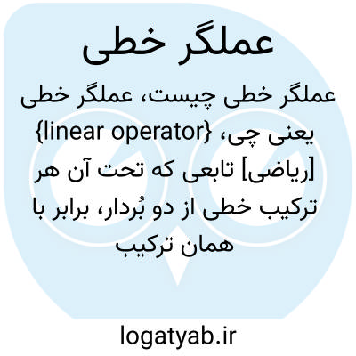 {linear operator} [ریاضی] تابعی که تحت آن هر ترکیب خطی از دو بُردار، برابر با همان ترکیب خطی از تبدیل های آن دو بُردار باشد متـ. تابع خطی linear function نگاشت خطی linear mapping, linear map تبدیل خطی linear transformation