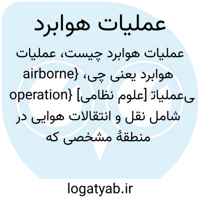{airborne operation} [علوم نظامی] عملیات‍ی شامل نقل و انتقالات هوایی در منطقۀ مشخصی که نیروهای رزمی در آن قرار دارند و حمایت آماد و پشتیبانی از آنها برای اجرای مأموریت راهکنشی یا عملیات‍ی یا راهبردی