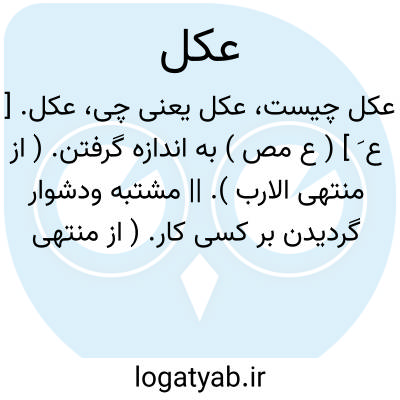عکل. [ ع َ ] ( ع مص ) به اندازه گرفتن. ( از منتهی الارب ). || مشتبه ودشوار گردیدن بر کسی کار. ( از منتهی الارب ) ( از اقرب الموارد ). || به رای خود دریافتن. ( از منتهی الارب ). به رای خویش گفتن. ( تاج المصادر بیهقی ) ( ازاقرب الموارد ). || به گمان گفتن. ( از منتهی الارب ). حدس زدن. ( از اقرب الموارد ). || فراهم آوردن. ( از منتهی الارب ). جمع کردن چیزی را پس از متفرق بودن آن. ( از اقرب الموارد ). || راندن، یا سخت راندن شتر را. ( از منتهی الارب ) ( از اقرب الموارد ). || بستن زانوی شتر، و یا بازو بستن هر دو دست شتر را. ( از منتهی الارب ). یک پای شتر بستن. ( تاج المصادر بیهقی ). «رسغ»؛ دست شتر را با ریسمان به بازوی او بستن، و چنین ریسمانی را «عکال » گویند. ( از اقرب الموارد ). || بازداشتن و بند نمودن. ( از منتهی الارب ) ( از اقرب الموارد ). || بازگردانیدن. ( از منتهی الارب ). || برزمین زدن. ( از منتهی الارب ) ( از اقرب الموارد ). || رخت بر هم نهادن. ( از منتهی الارب ). چیدن کالا بر همدیگر. ( از اقرب الموارد ). کالا بر هم نهادن. ( تاج المصادر بیهقی ). || مردن. || کوشش کردن در کار. ( منتهی الارب ) ( از اقرب الموارد ).