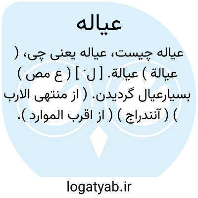 ( عیالة ) عیالة. [ ل َ ] ( ع مص ) بسیارعیال گردیدن. ( از منتهی الارب ) ( آنندراج ) ( از اقرب الموارد ). عَول.رجوع به عول شود. || کافی و بسنده گردیدن. عیال خود را نفقه و خورش دادن و عیالداری کردن. ( از منتهی الارب ) ( آنندراج ). معاش کافی قرار دادن برای عیال و مؤونت دادن آنها را. ( از اقرب الموارد ). عَول. عُؤول. رجوع به عول و عؤول شود. || کفالت کردن و اداره نمودن یتیم. ( از اقرب الموارد ).