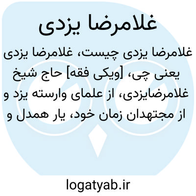 [ویکی فقه] حاج شیخ غلامرضایزدی، از علمای وارسته یزد و از مجتهدان زمان خود، یار همدل و هم مباحثه آقا سید حسن نجفی قوچانی، و از شاگردان آخوند خراسانی، و سید محمدکاظم طباطبایی یزدی صاحب عروة الوثقی، و از مبلغان با اخلاص، که عمرش در خالصانه در راه تبلیغ دین گذاشت. متوفای ۱۳۸۰ هـ. ق.