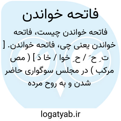 ( مصدر ) در مجلس سوگواری برای روح مرده دعای خیر فرستادن ( اشاره بخواندن سوره فاتحه الکتاب ) یا فاتحه چیزی را خواندن. آن را باتمام رسانیدن: در ظرف دو روز فاتحه همه ذخیره غذایی را خواند. یا فاتحه نخواندن برای کسی. به او اهمیت ندادن.