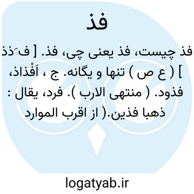فذ. [ ف َذذ ] ( ع ص ) تنها و یگانه. ج، اَفْذاذ، فذود. ( منتهی الارب ). فرد، یقال: ذهبا فذین.( از اقرب الموارد ). || ( اِ ) اول تیر قمار، و هی عشرة اولها الفذ ثم التوأم ثم الرقیب ثم الحلس ثم النافس ثم المسبل و ثم المعلی و ثلثه لا انصباءلها و هی السفیح و المنیح و الوغد. ( از منتهی الارب )( از اقرب الموارد ). اول تیر از هفت تیر قمار. ( آنندراج ). || ( ص ) تمر یا خرمای متفرق. ( از اقرب الموارد ): تمر فذ؛ خرمای پراکنده. ( منتهی الارب ).