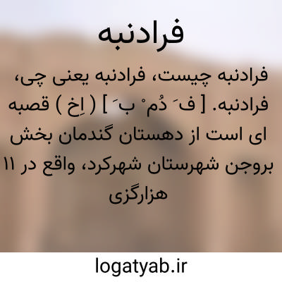 فرادنبه. [ ف َ دُم ْ ب َ ] ( اِخ ) قصبه ای است از دهستان گندمان بخش بروجن شهرستان شهرکرد، واقع در 11 هزارگزی باختر بروجن متصل به راه بروجن به اصفهان. ناحیه ای است واقع در دامنه کوه و معتدل که دارای 4004 تن سکنه است. آب آنجا از قنات تأمین میشود و محصولاتش غلات، حبوب، کتیرا و لبنیات است. اهالی به کشاورزی و گله داری گذران میکنند. صنعت دستی زنان قالی بافی است. راه ماشین رو و یک باب دبستان و نیز یک قلعه قدیمی و یک زیارتگاه و در حدود 35 باب دکان دارد. ( از فرهنگ جغرافیایی ایران ج 10 ).