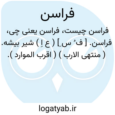 فراسن. [ ف ُ س ِ] ( ع اِ ) شیر بیشه. ( منتهی الارب ) ( اقرب الموارد ).