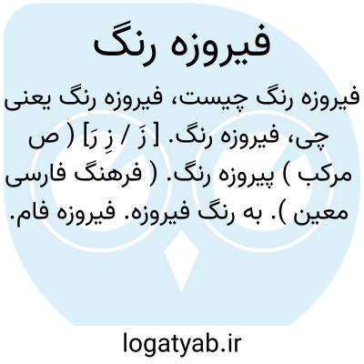 فیروزه رنگ. [ زَ / زِ رَ] ( ص مرکب ) پیروزه رنگ. ( فرهنگ فارسی معین ). به رنگ فیروزه. فیروزه فام. آبی یا سبز یا کبود: