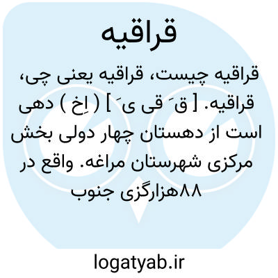 قراقیه. [ ق َ قی ی َ ] ( اِخ ) دهی است از دهستان چهار دولی بخش مرکزی شهرستان مراغه. واقع در 88هزارگزی جنوب خاوری مراغه و 22هزارگزی خاور شوسه شاهین دژ به میاندوآب. موقع جغرافیایی آن کوهستانی و معتدل و سکنه آن 246 تن است. آب آن از چشمه سارها و محصول آن غلات، حبوبات، کرچک و بادام و شغل اهالی زراعت و گله داری و صنایع دستی آنان جاجیم بافی است.راه مالرو دارد. ( از فرهنگ جغرافیائی ایران ج 4 ).