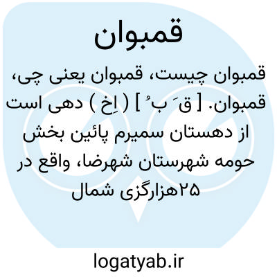 قمبوان. [ ق َ ب ُ ] ( اِخ ) دهی است از دهستان سمیرم پائین بخش حومه شهرستان شهرضا، واقع در 25هزارگزی شمال باختر شهرضا متصل به راه شهرضا به قمبوان. موقع جغرافیایی آن جلگه و هوای آن معتدل است. سکنه آن 2360 تن است. آب آن از قنات و محصول آن غلات، پنبه و شغل اهالی زراعت است. راه ماشین رو و دبستان و پاسگاه ژاندارمری و در حدود 25باب دکان دارد. ( از فرهنگ جغرافیایی ایران ج 10 ).