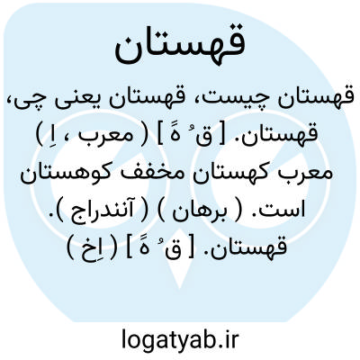 قهستان. [ ق ُهََ ] ( اِخ ) نام یکی از دهستانهای بخش مرکزی سیرجان. محصول عمده آن غلات، پنبه و شغل سکنه آن مکاری گری، زراعت و پیشه وری است. این ده از 17 آبادی بزرگ و کوچک تشکیل شده و جمعیت آن 3549 تن و مرکز دهستان قریه سعادت آباد است. ( از فرهنگ جغرافیایی ایران ج 8 ).