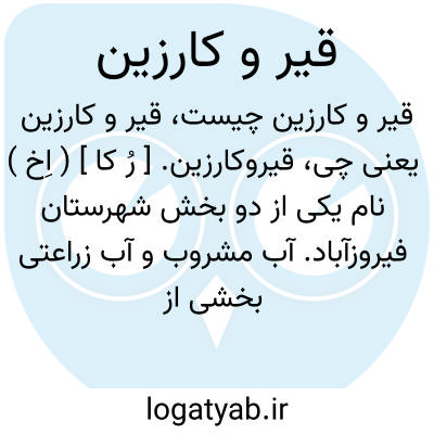 قیروکارزین. [ رُ کا ] ( اِخ ) نام یکی از دو بخش شهرستان فیروزآباد. آب مشروب و آب زراعتی بخشی از رودخانه قره آغاج، چشمه سارها و قنوات تأمین میشود. محصولات آن عبارتند از برنج، خرما، لیمو، و جزئی پنبه و شغل اهالی آنجا زراعت و باغداری است. این آبادی از دو دهستان قیروکارزین و افزر تشکیل شده و مجموع قرای آن 42 و نفوس بخش بالغ بر 12000 تن میشود. مرکز آن قصبه قیر است.در حومه این دهستان 27 آبادی است و نفوس آن در حدود 10000 تن و قرای مهم آن عبارتند از کارزین، ده به، مبارک آباد، گاوکی و نفرقون. از ایل قشقائی طوایف: کردشولی، عمله، موصلو، چهاربنیچه و بوربور در دهستان حومه قشلاق میکنند. ( از فرهنگ جغرافیایی ایران ج 7 ).