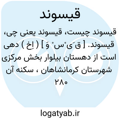 قیسوند. [ ق َی ْس ْ وَ ] ( اِخ ) دهی است از دهستان بیلوار بخش مرکزی شهرستان کرمانشاهان، سکنه آن 280 تن. آب آن از چشمه می باشد. محصول آن غلات، میوه جات، لبنیات، چغندرقند،توتون و شغل اهالی آنجا زراعت است. از راه شوسه اتومبیل میتوان برد. ( از فرهنگ جغرافیایی ایران ج 5 ).