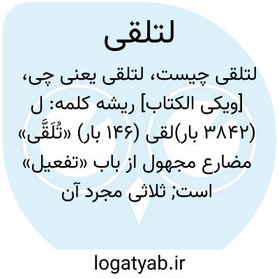روبرو شدن با شیءِ و مصادف شدن. عبارت راغب چنین است «اَلِلّقاءُ مُقبَلَةُ الشَّیْء وَ مُصادَفَتُهُ مَعاً».. چون با اهل ایمان روبرو شدند گویند ایمان آوردیم. تَلْقِیَة: به معنی روبرو کردن و تفهیم و اعطا است در اقربالموارد گفته «لَقاهُ الشَّیْءَ: طَرَحَهُ اَلْیهِ» در جوامع الجامع «لَتُلَّقَ الْقُرْآنَ» را داده شدن و تفهیم گفته است.. تو قرآن را از جانب خدای حکیم و دانا تفهیم میشوی که آنهم یک نوع روبرو شدن است.. و عطا کرد بآنها بهجت و سرور را.. تفهیم نمیشوند آنرا مگر صابران یا داده نمیشوند آن را مگر خویشتن داران.. روبرو میشوند در آن با تحیّت و سلام. *** اِلْقاء: انداختن هر چیز است به محلی که میبینی آنگاه در عرف به هر انداختن اسم شده است (راغب)... که در هر دو مطلق انداختن است و در. اِلْقاء معنوی مراد است. *** تَلَّقی: به معنی تفهم و اخذ است «تَلَقَّیْتُ مَنْهُ» یعنی از او اخذ و قبول کردم (مجمع) در اقربالموارد آمده «تَلَقَّی الشَّیْءَ: تَلَقَّنَهُ» یعنی آن را فهمید. آدم از پروردگارش کلماتی اخذ کرد و خدا به آدم توبه نمود.. آنگاه که افک را به زبان اخذ میکردید و زبان به زبان میگرداندید.. آنگاه که دو اخذکننده و فهمنده اخذ میکنند اعمال را که در راست و چپ انسان نشستهاند ظاهراً مراد از قعید پیوسته بودن آنهاست به موجب روایات یکی نویسنده اعمال نیک و دیگری نویسنده اعمال بد است.. میپذیرند آنها را ملائکه و گویند: این روز شماست که وعده داده میشدید. اِلْتِقاء: ملاقات دو شیء است همدیگر را.. *** لِقاءُالله: گفتهاند لِقاءُالله به معنی مرگ است و آن ملاقات خدا است. ولی آیات نشان میدهد که آن قیامت و ملاقات نعمت و عذاب خداوند است.. آنانکه روز قیامت را تکذیب کردند زیانکارشدند.. پس لقاءالله مرگ نیست بلکه ثواب و عقاب خدا است. تِلْقاء: جهت و طرفی که در مقابل است و ظرف مکان بکار میرود «جَلَسَ تِلْقاء فُلانٍ» یعنی مقابل او نشست. و چون چشمشان به طرف اهل آتش برگشت گویند خدایا ما را با ستمگران قرین مگردان.. چون به طرف مدین رو کرد گفت.... بگو نیست بر من که قرآن را از جهت داعی نفس خویش عوض کنم گویند «ذلِکَ مِنْ تِلْقاء نَفْسِهِ» یعنی این از طرف داعی نفس خویش است. *. روز قیامت را از آن یَوْمُالتَّلاق گفتهاند که در آن اهل آسمان و زمین، خدا و خلق، اولین وآخرین، ظالم و مظلوم، انسان و عملش، یکدیگر را ملاقات کنند. برای هر یک از این وجوه قائلی است. المیزان وجه دوم را تأکید میکند به قرینه. و آیات دیگر.طبرسی بعید نمیداند که تمام وجوه مراد باشند، اختیارالمیزان مقبولتر است که از اینگونه آیات. در قرآن زیاد است. *. ظاهراً مراد بادهاست که به نوعی نسبت به قیامت تذکّر می دهند رجوع شود به «رسل».