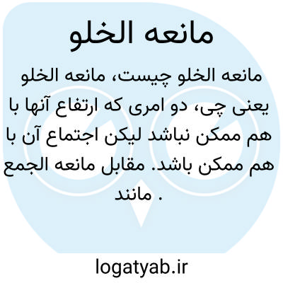 ( مانعة الخلو ) دو امر که اتفاق آن ها با هم ممکن نباشد لیکن اجتماع آن دو با هم ممکن باشد.