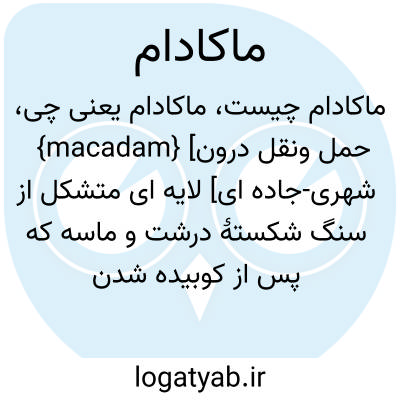 {macadam} [حمل ونقل درون شهری-جاده ای] لایه ای متشکل از سنگ شکستۀ درشت و ماسه که پس از کوبیده شدن به عنوان لایۀ تحتانی زیراساس به کار می رود