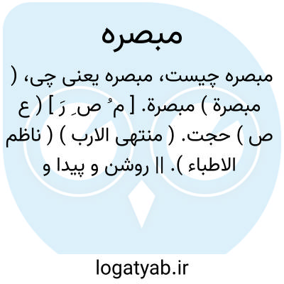 ( مبصرة ) مبصرة. [ م ُ ص ِ رَ ] ( ع ص ) حجت. ( منتهی الارب ) ( ناظم الاطباء ). || روشن و پیدا و هویدا. ( ناظم الاطباء ). روشن و پیدا و منه قوله تعالی:...و جعلنا آیةالنهار مبصرة. و قوله تعالی... و آتینا ثمودالناقة مبصرة؛ ای آیة واضحة بینه. ( منتهی الارب ) ( آنندراج ) ( از محیطالمحیط ) ( ناظم الاطباء ). || بیناکننده. منه قوله تعالی: فلما جأتهم آیاتنامبصرة؛ ای تجعلهم بصراء. ( منتهی الارب ) ( آنندراج ) ( ناظم الاطباء ).