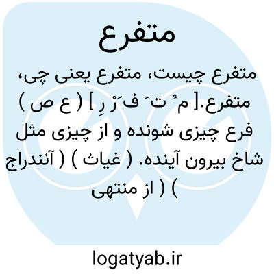 متفرع.[ م ُ ت َ ف َرْ رِ ] ( ع ص ) فرع چیزی شونده و از چیزی مثل شاخ بیرون آینده. ( غیاث ) ( آنندراج ) ( از منتهی الارب ) ( از اقرب الموارد ). برآورده و صادر شده و مشتق گشته. و منتشر شده و شاخه برآورده و حاصل شده و پدید آمده و صادر شده و موجود شده و مشتق شده و منشعب شده و شاخه شاخه شده و منسوب و متعلق. ( ناظم الاطباء ).