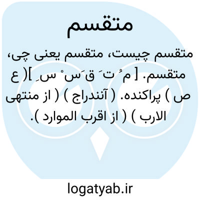 متقسم. [ م ُ ت َ ق َس ْ س ِ ]( ع ص ) پراکنده. ( آنندراج ) ( از منتهی الارب ) ( از اقرب الموارد ). پراکنده و پراکنده شده. ( ناظم الاطباء ).