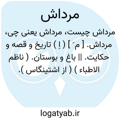 مرداش. [ م َ ] ( اِ ) تاریخ و قصه و حکایت. || باغ و بوستان. ( ناظم الاطباء ) ( از اشتینگاس ).