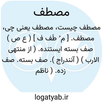 مصطف. [ م ُ طَف ف ] ( ع ص ) صف بسته ایستنده. ( از منتهی الارب ) ( آنندراج ). صف بسته. صف زده. ( ناظم الاطباء ). رده برکشیده. || به نظم مرتب شده و فراهم شده. ( ناظم الاطباء ).