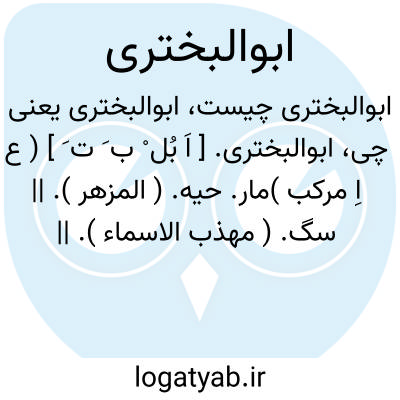 ابوالبختری. [ اَ بُل ْ ب َ ت َ ] ( ع اِ مرکب )مار. حیه. ( المزهر ). || سگ. ( مهذب الاسماء ). || کراخک. ( در نسخه ای از مهذب الاسماء ).