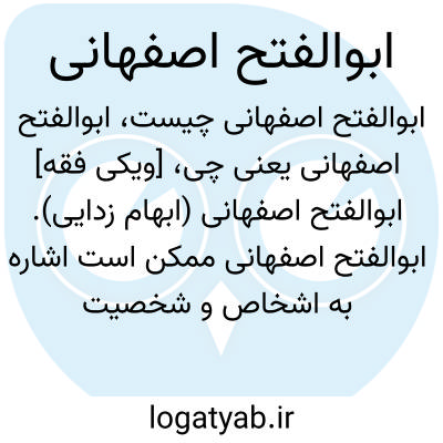 [ویکی فقه] ابوالفتح اصفهانی (ابهام زدایی). ابوالفتح اصفهانی ممکن است اشاره به اشخاص و شخصیت های ذیل باشد: • ابوالفتح عبدالجبار بن عبداللّه اردستانی اصفهانی، از محدّثین قرن پنجم هجری در اصفهان• ابوالفتح عبدالحمید اردستانی اصفهانی، از بزرگان در بلاغت و فصاحت و کیاست• ابوالفتح خالد بن عمر غازی اصفهانی، از محدّثین اصفهان در قرن پنجم هجری• ابوالفتح محمد بن احمد اصفهانی، از محدثین قرن پنجم هجری و متولد اصفهان• ابوالفتح محمد بن قاسم اصفهانی، از دانشمندان قرن پنجم و ششم هجری در اصفهان• ابوالفتح محمود بن حسین اصفهانی، از محدّثین قرن پنجم و ششم هجری در اصفهان• ابوالفتح منصور بن حسن اصفهانی، از دانشمندان معتزلی قرن پنجم هجری در اصفهان• ابوالفتح بنجری اصفهانی، از دانشمندان کلام و حدیث• ابوالفتح بن ابی العیاض اصفهانی، از ادبای اصفهان• ابوالفتح دانشور بختیاری اصفهانی، از شعرای معاصر اصفهان• ابوالفتح اوژن بختیاری اصفهانی، از شعرا و نویسندگان معاصر• ابوالفتح انصاری اصفهانی، از محدّثین اصفهان• ابوالفتح بن باباخان دهقان سامانی اصفهانی، از شعرا و ادبای ساکن اصفهان در قرن سیزده هجری• ابوالفتح بن قولویه اصفهانی، از ادباء و شعرای پارسی گوی اصفهان در قرون نخستین هجری• ابوالفتح بن پاشا فریدون کجوری اصفهانی، از نویسندگان اصفهان در قرن یازدهم هجری• ابوالفتح ورزرده اصفهانی، از دانشمندان اصفهان• ابوالفتح احمد بن علی مافروخی اصفهانی، از ادباء و فضلای اصفهان• ابوالفتح احمد بن محمد طیفورآبادی اصفهانی، از محدّثین اصفهان• ابوالفتح احمد بن عبداللّه سودرجانی اصفهانی، از محدّثین قرن پنجم هجری در اصفهان• ابوالفتح احمد بن محمد حداد تاجر اصفهانی، از محدّثین مشهور اصفهان در قرن پنجم هجری• ابوالفتح احمد بن محمد واعظ ززی اصفهانی، واعظی خوش بیان و از اهالی اصفهان و معاصر ابوسعد سمعانی• سیدابوالفتح بن محمد حسینی خوراسکانی اصفهانی، از علما و فضلای اصفهان در قرن یازده هجری• سیدابوالفتح بن ابوالقاسم حسینی فندرسکی استرآبادی، از علمای اصفهان در قرن یازده هجری• ابوالفتح اسماعیل بن علی طوسی جعفری زینبی اصفهانی، از صوفیان قرن پنجم و ششم هجری در اصفهان• ابوالفتح اسماعیل بن محمد طرطوسی سلمی اصفهانی، از محدّثین قرن ششم هجری و ساکن اصفهان