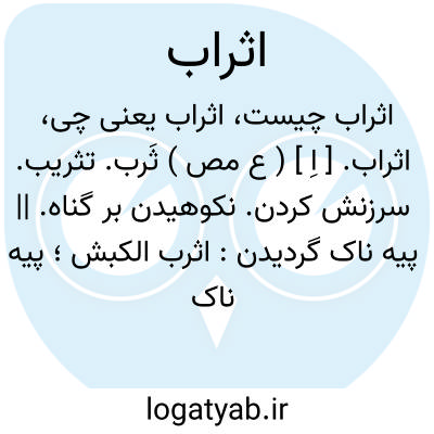اثراب. [ اِ ] ( ع مص ) ثَرب. تثریب. سرزنش کردن. نکوهیدن بر گناه. || پیه ناک گردیدن: اثرب الکبش؛ پیه ناک گردید قچقار. ( منتهی الارب ).