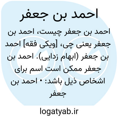 [ویکی فقه] احمد بن جعفر (ابهام زدایی). احمد بن جعفر ممکن است اسم برای اشخاص ذیل باشد: • احمد بن جعفر سبتی، کنیه اش ابوالعباس، صوفی و فقیه مراکشی سده ششم و هفتم• احمد بن جعفر جحظه برمکی، ندیم، خنیاگر، شاعر و گزارش گر معتبر اخبار نغمه سرایان عصر نخست عباسی (۱۳۲ـ۲۳۰) ...